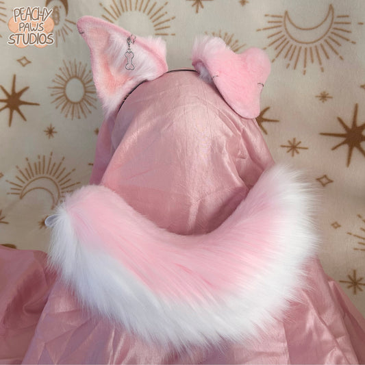 Pastel Pink Floppy Puppy Ears + Mini Tail Set